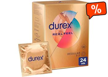 Durex Real Feel Condoms, Extra Lubricated, Latex Free, Easy-On Shape, 24 Condoms