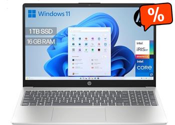 HP 15-fd0379ns - 15.6" FHD Laptop (Intel Core i7-1355U, 16GB RAM, 1TB SSD, Intel Iris Xe Graphics, Windows 11) Silver - Spanish QWERTY Keyboard