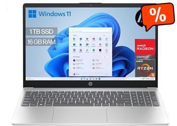 HP 15-fc0241ns - 15.6" FHD Laptop (AMD Ryzen 5-7520U, 16GB RAM, 1TB SSD, AMD Radeon Graphics, Windows 11) Silver and Blue - Spanish QWERTY Keyboard